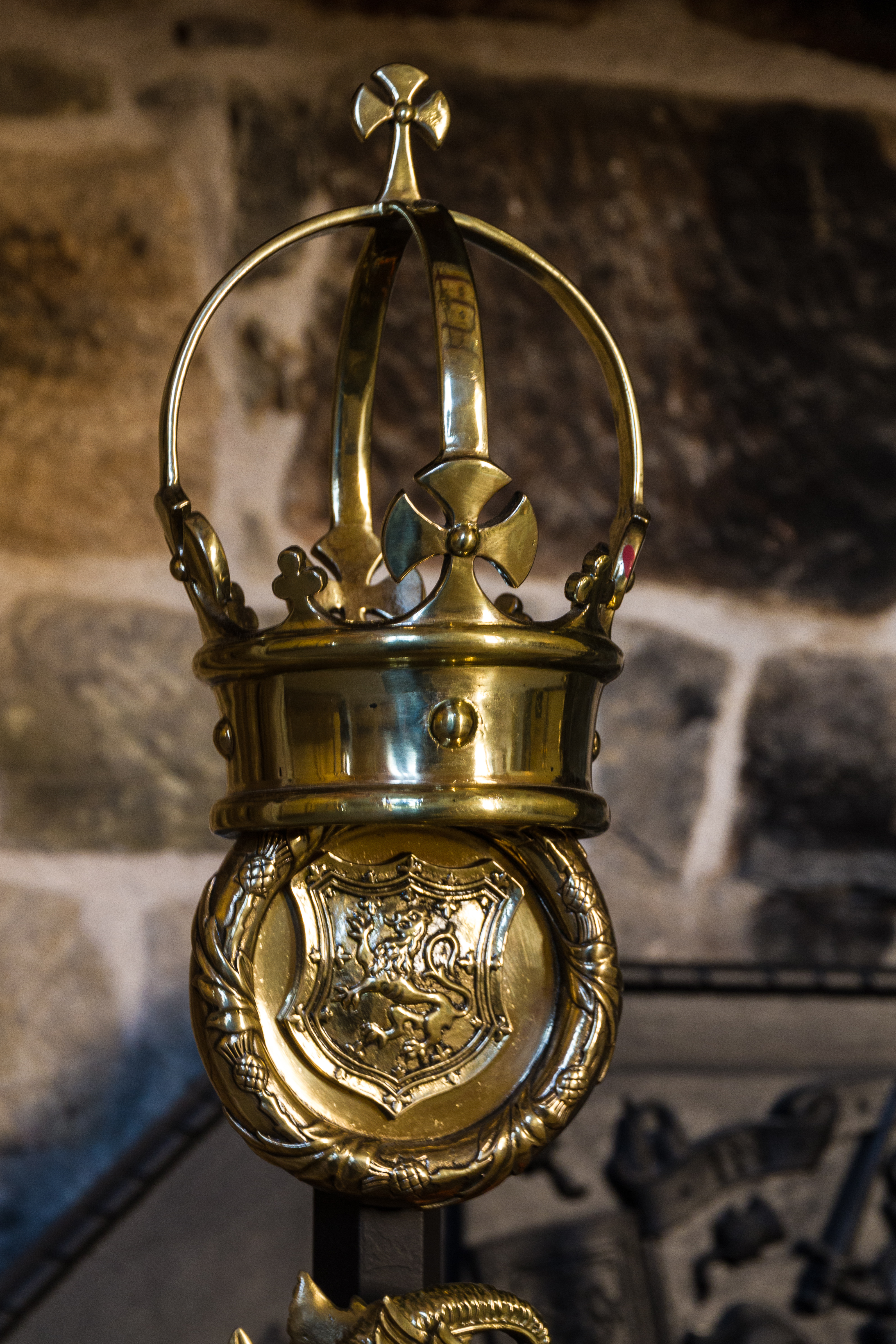 Krone als Verzierung des offenen Kamins