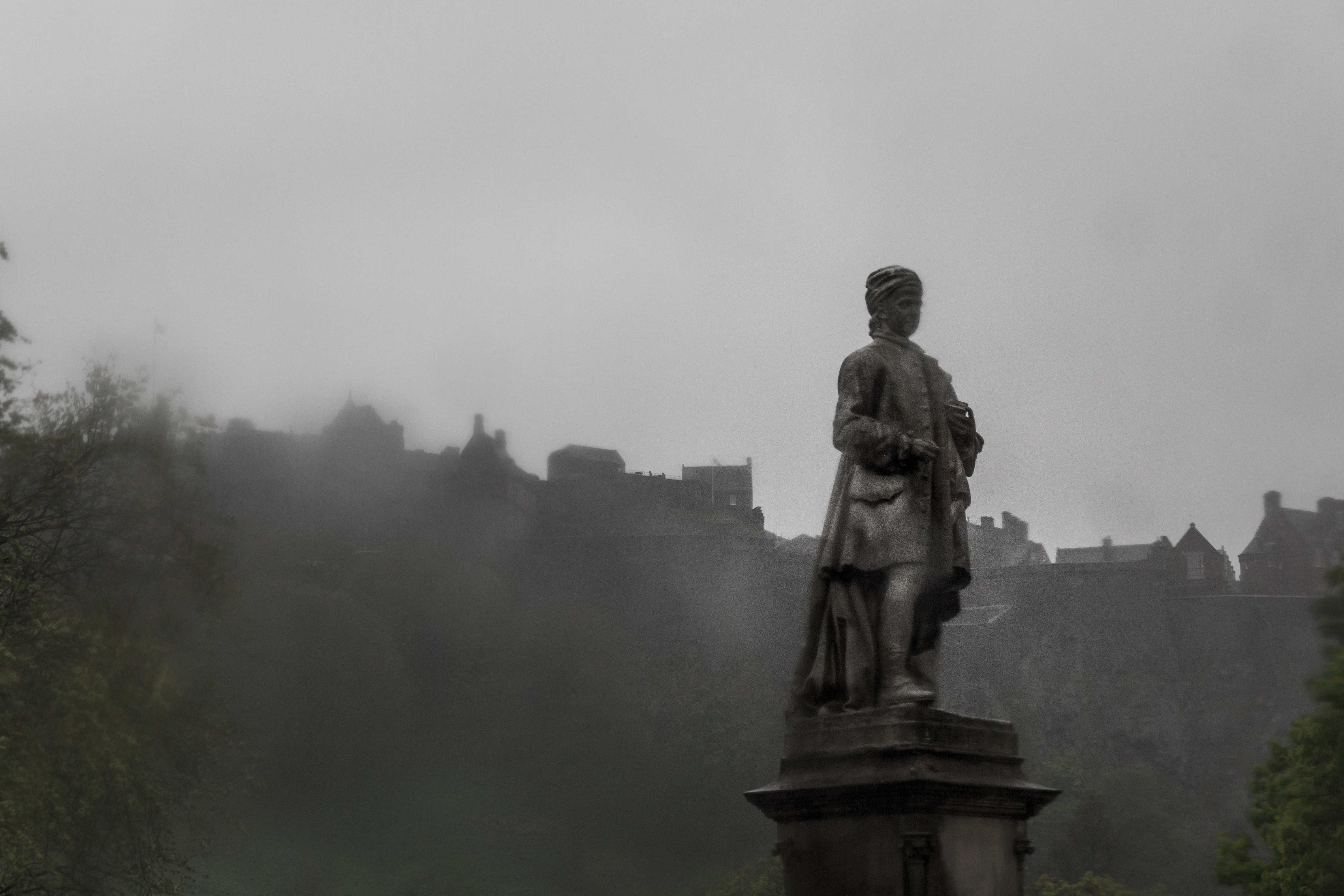 Royal Scots Greys Monument im Nebel